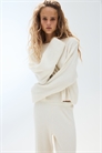 Джемпер оверсайз из мягкого трикотажа в рубчик с ребристой горловиной, спущенными плечами и длинными рукавами.