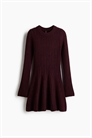 Короткое приталенное платье из мягкого трикотажа в рубчик. Круглый вырез, длинные рукава и слегка расклешенная юбка.