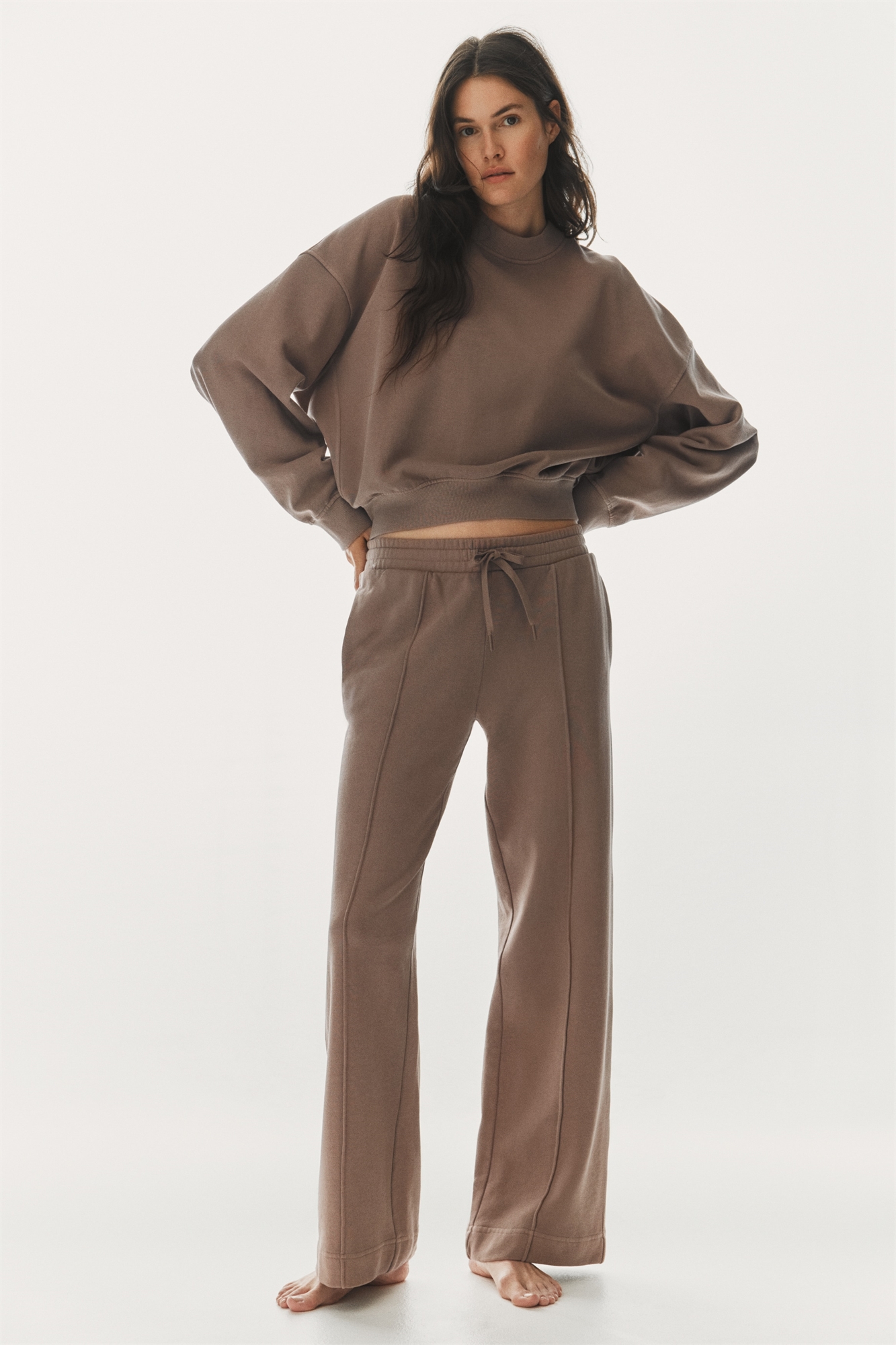 Топ из легкой хлопковой ткани в виде толстовки с потертым видом. Свободный крой с ребристой горловиной, спущенными плечами и длинными рукавами. Ребристые манжеты и подол.