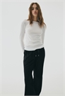 Свободные брюки из тканого материала с эластичной отделкой и утягивающим шнурком на талии. Небрежные боковые карманы, фальшивые карманы сзади и прямые ноги.