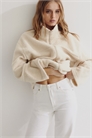 Толстовка больших размеров из мягкого тедди с воротником-стойкой, застежкой-молнией спереди и незаметными карманами в боковых швах. Спущенные плечи и длинные широкие рукава.