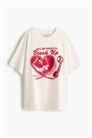 Футболка оверсайз из хлопкового джерси с принтом, круглым вырезом с ребристой отделкой, спущенными плечами и короткими рукавами.