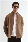 Рубашка из мягкого хлопкового полотна с отложным воротником на пуговицах, классической передней частью, передом и открытым нагрудным карманом. Длинные рукава с манжетами на пуговицах и рукавной застежкой, а также закругленный подол. Свободный крой для пышного, но не чрезмерно большого силуэта.
