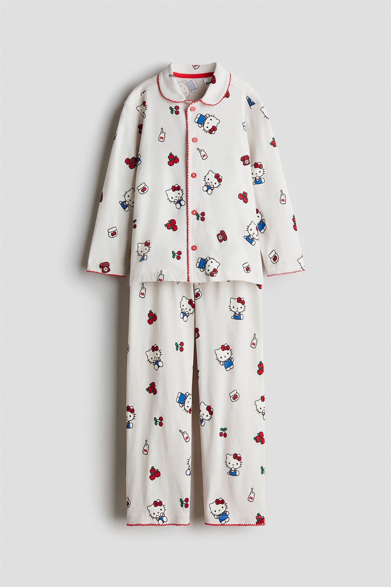 Пижама с рубашкой и штанами из мягкого хлопкового джерси с рисунком и отделкой пико. Рубашка с закругленным воротником, застежкой на пуговицы спереди и длинными рукавами. Низ с эластичной талией.
