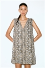 Короткое платье без рукавов из тканого материала. А-линия силуэта с V-образным вырезом и прямым покроем. На подкладке.