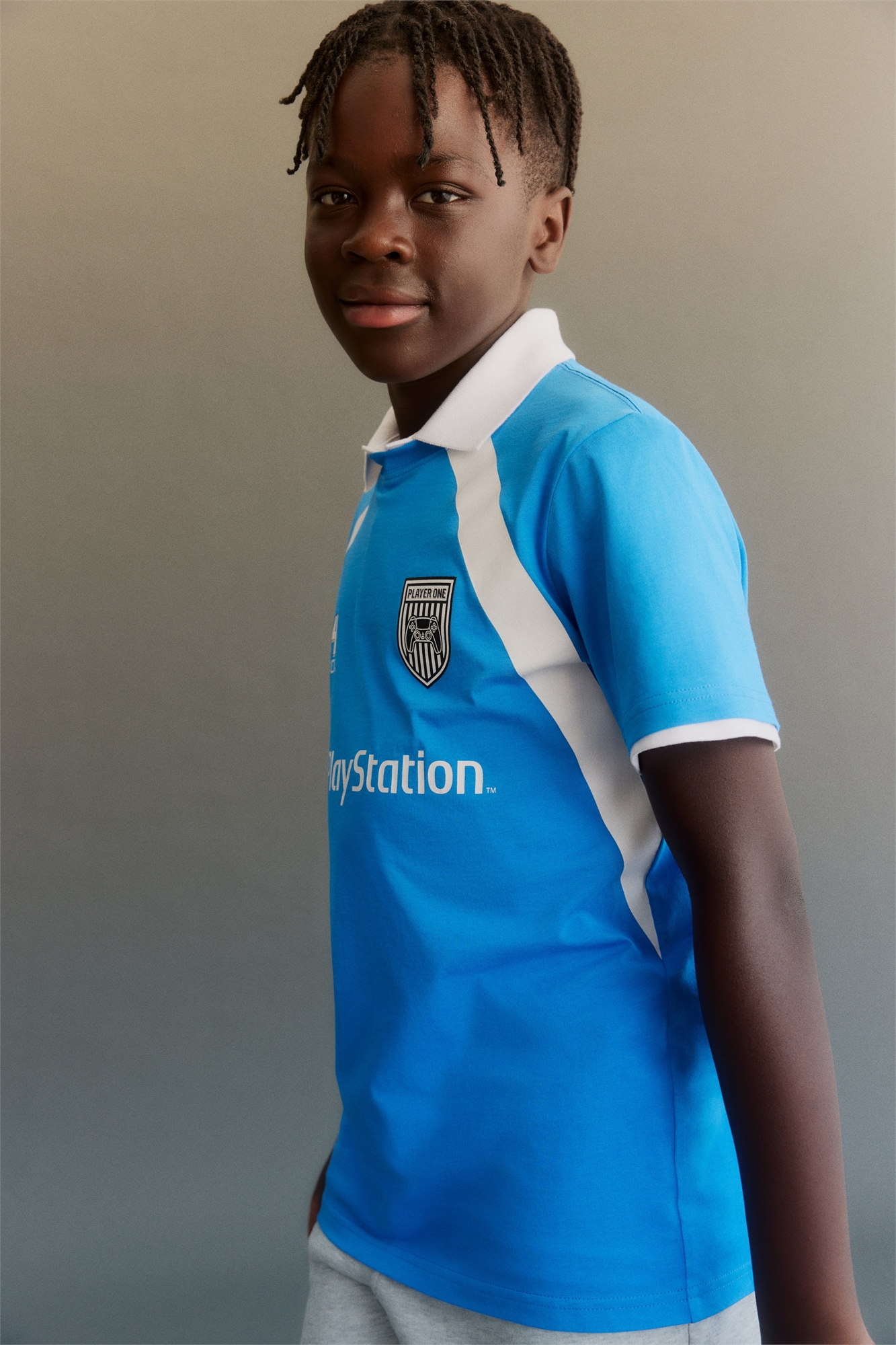 Футболка из мягкого хлопкового джерси с принтом, круглым вырезом с ребристой отделкой и спущенными плечами.