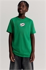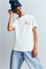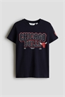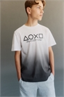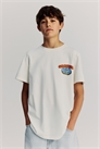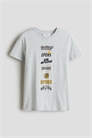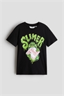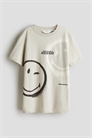 Футболка из мягкого хлопкового джерси с принтом, круглым вырезом с ребристой отделкой и спущенными плечами.