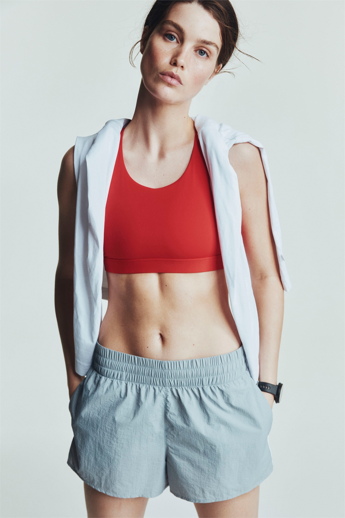 Спортивные шорты из водоотталкивающей функциональной ткани с эластичным поясом и карманами в боковых швах.