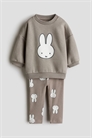 Комплект с принтом: топ из толстовки и леггинсы из мягкого трикотажа, оба из хлопка. Топ с круглым вырезом в рубчик с застежками с одной стороны (кроме размеров 2-4Y), спущенными плечами и окантовкой манжет и подола. Леггинсы с регулируемой эластичной талией.