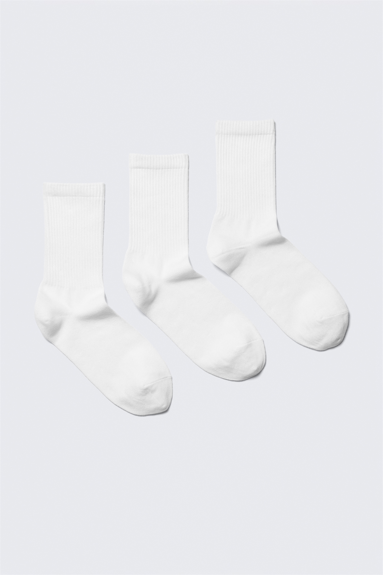 Три комплекта спортивных носков из мягкой хлопковой смеси. Они имеют удобную носочную часть, ребристый голенище и укрепленный мысок.