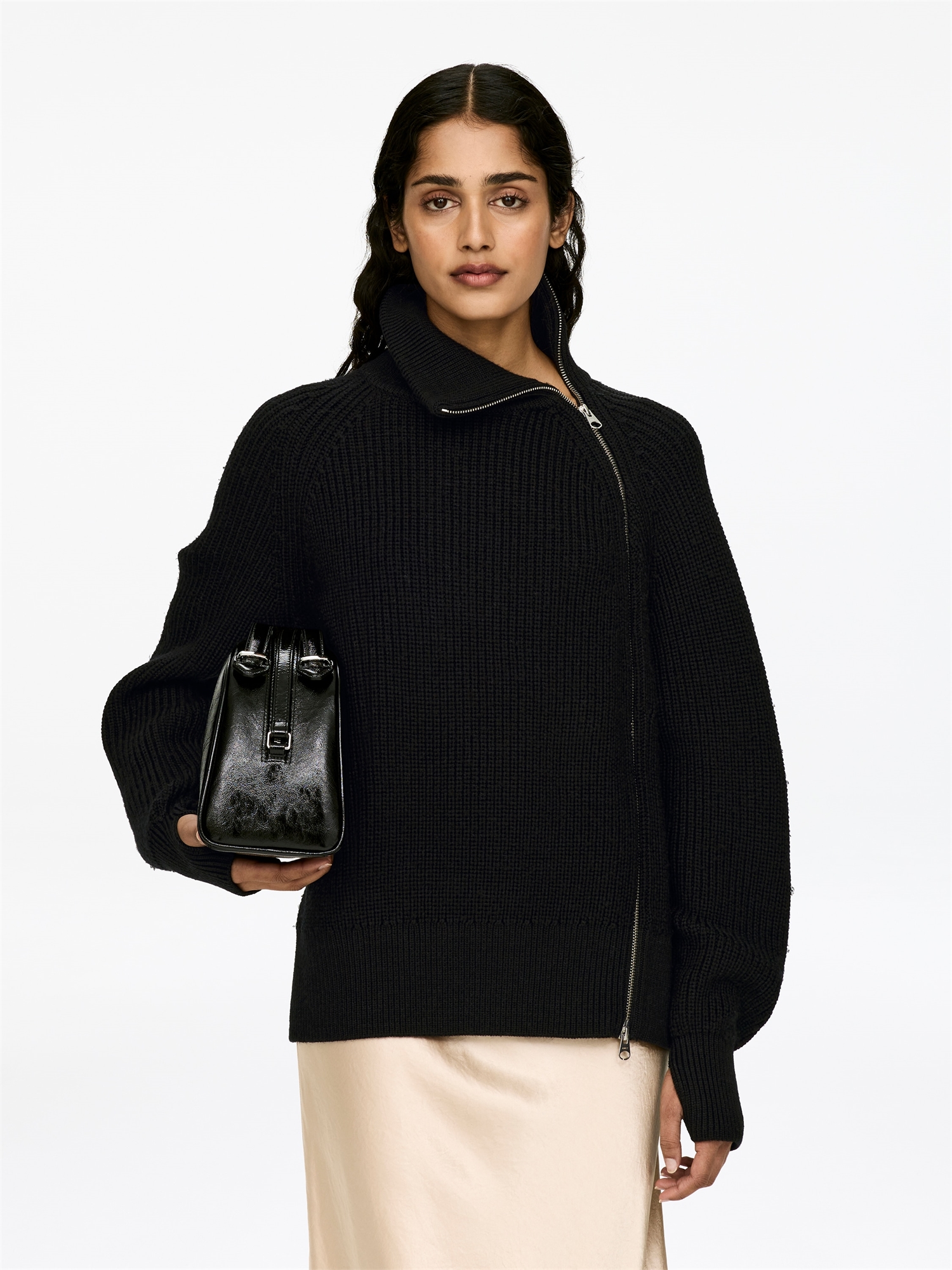 Кардиган из шерстяного бленда с высокой горловиной и застежкой на молнию. Свободный крой.