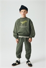 Комплект из топа и джоггеров из легкой толстовочной ткани с начесом внутри и принтом. Топ с круглым вырезом в рубчик, спущенными плечами, окантовкой манжет и подола. Джоггеры с эластичной утягивающейся талией и эластичными вставками на подоле.