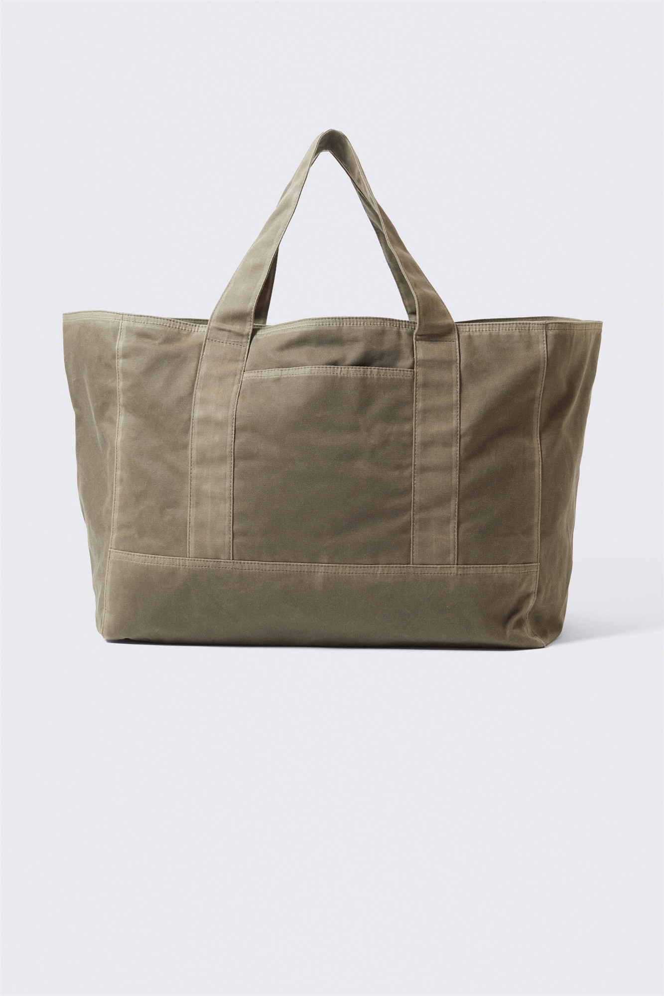 Вместительная сумка-тоут изготовлена из прочного вощеного хлопкового холста с грубой, утилитарной отделкой. Усиленные двойные ручки, видимые швы и большой внешний карман. Внутреннее отделение без подкладки закрывается на потайную молнию для надежного хранения, а структурированная форма делает эту сумку надежной переноской на каждый день или на выходные. Размеры: ширина 45 см, высота 35 см, глубина 24 см.