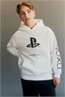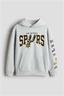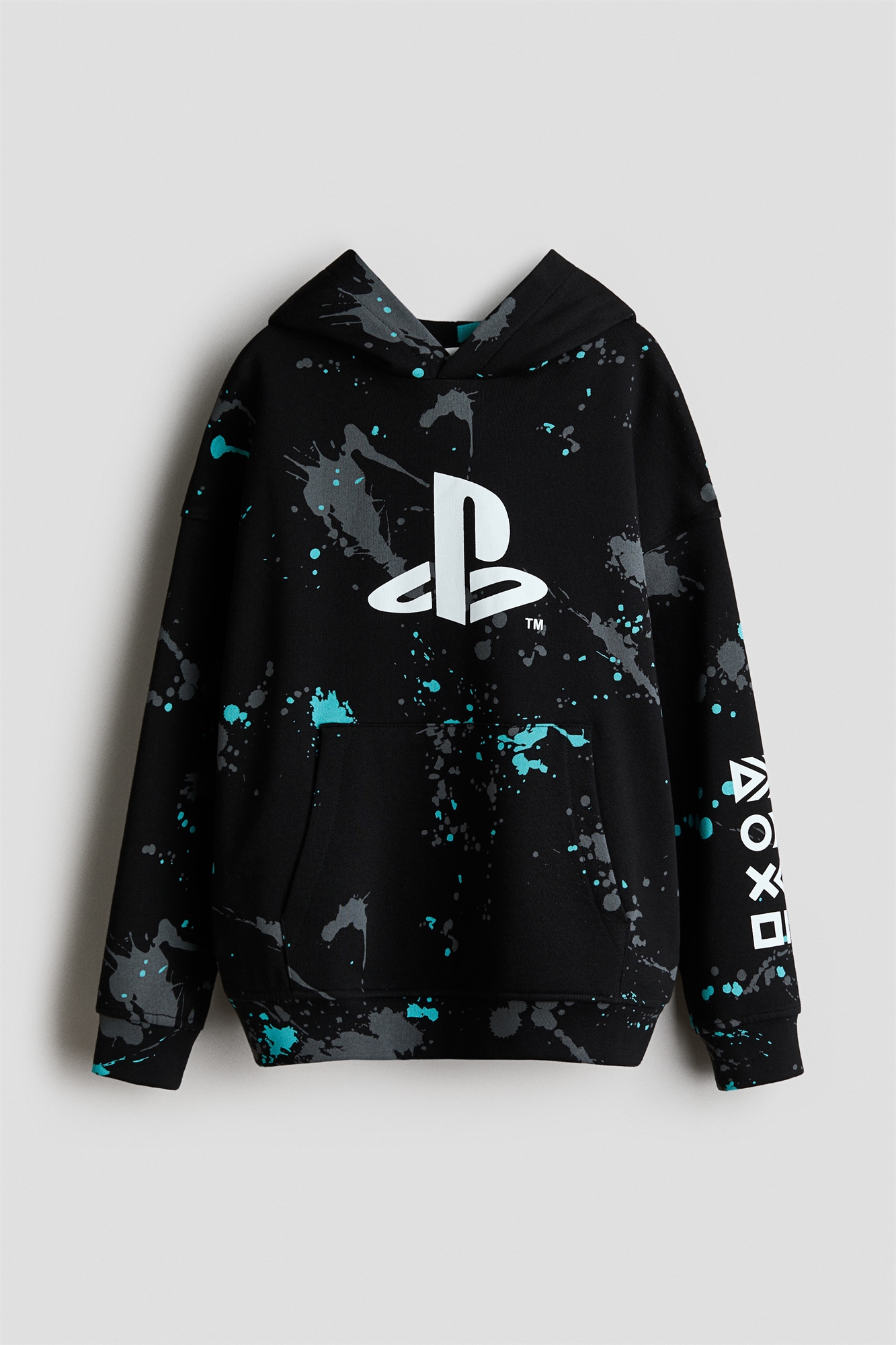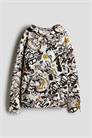 Толстовка свободного кроя из принтованной ткани с мягкой начесом внутри. Капюшон на подкладке, накинутый спереди, с опущенными плечами и карманом-кенгуру спереди. Длинные рукава и окантовка манжет и подола.