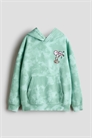 Толстовка свободного кроя из принтованной ткани с мягкой начесом внутри. Капюшон на подкладке, накинутый спереди, с опущенными плечами и карманом-кенгуру спереди. Длинные рукава и окантовка манжет и подола.