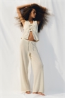 Брюки из мягкого тонкого трикотажа с эластичным утягивающим поясом и широкими штанинами.