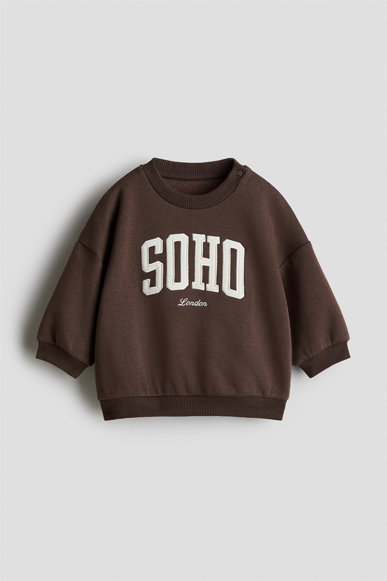 Топ из толстовки с мягкой начесанной внутренней стороной и деталью из мотивов спереди. Круглый вырез в рубчик с застежками с одной стороны (кроме размеров 2-4Y), спущенные плечи, манжеты и подол в рубчик.