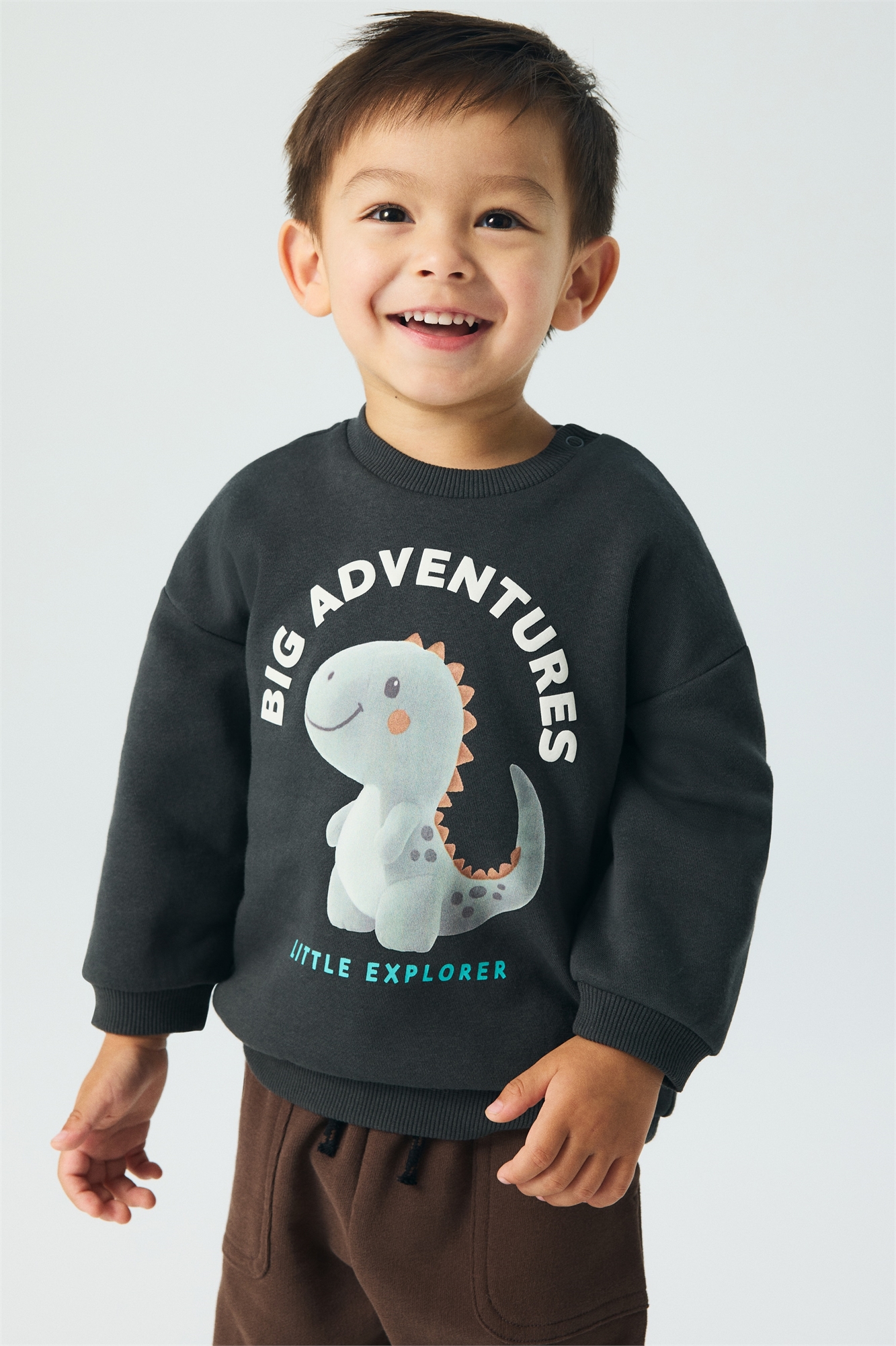 Топ из толстовки с мягкой начесанной внутренней стороной и деталью из мотивов спереди. Круглый вырез в рубчик с застежками с одной стороны (кроме размеров 2-4Y), спущенные плечи, манжеты и подол в рубчик.