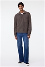 Джемпер из мягкого тонкого трикотажа с воротником и застежкой-молнией в верхней части, открытым нагрудным карманом, длинными рукавами и ребристой отделкой на манжетах и подоле. Регулярный крой для комфортной носки и классический силуэт.