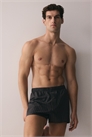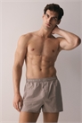 Трусы-боксеры из мягкого тканого материала с эластичной талией, средней длиной и застежкой на пуговицу.