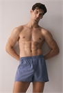 Трусы-боксеры из мягкого тканого материала с эластичной талией, длинными ногами и ширинкой на пуговицах.