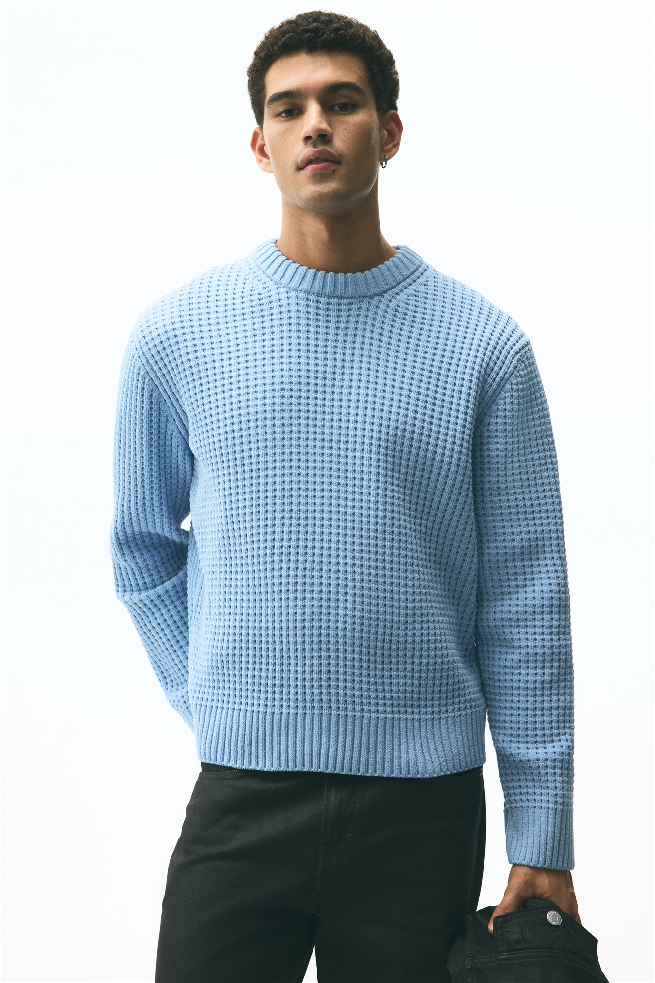 Джемпер из мягкой, фактурной вязки синель. Круглый вырез в рубчик, спущенные плечи, длинные рукава, манжеты и подол в рубчик. Регулярный крой для комфортной носки и классического силуэта.