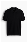Рубашка-поло из тонкого трикотажа в рубчик из смеси хлопка и вискозы с воротником, застежкой на молнию, короткими рукавами и прямым подолом. Зауженный крой, облегающий контуры тела и создающий приталенный силуэт.