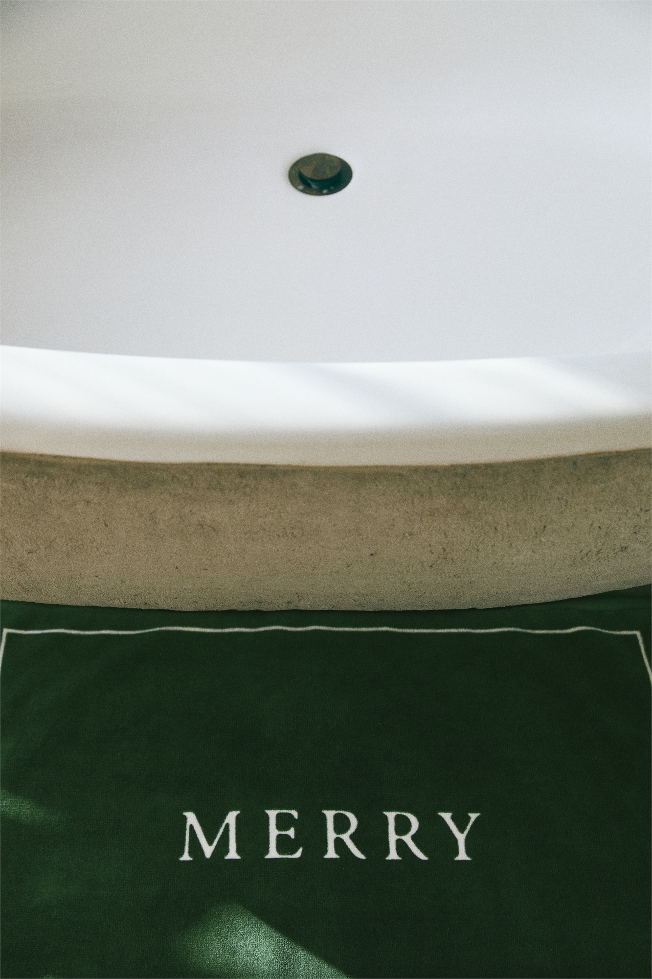 Прямоугольный коврик для ванной из мягкого велюра с праздничным принтом по центру. С обратной стороны имеет противоскользящие накладки. 750 GSM.