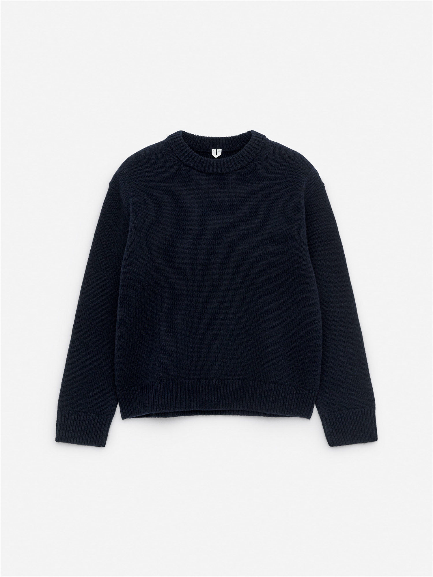 Джемпер из плотной шерсти, вязаный гладью. Свободный крой с вырезом горловины. Отделка ребристой вязкой.