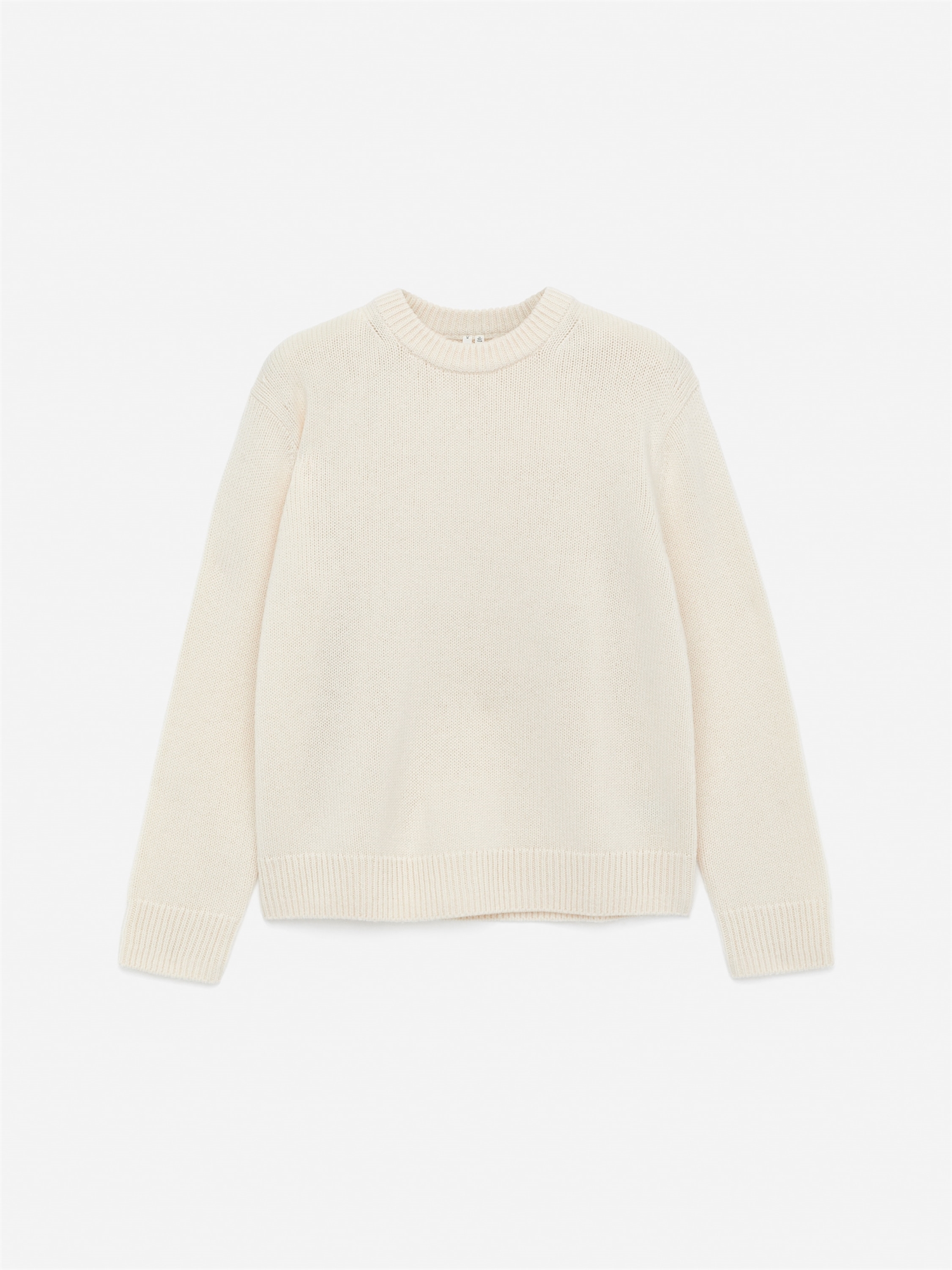 Джемпер из плотной шерсти, вязаный гладью. Свободный крой с вырезом горловины. Отделка ребристой вязкой.