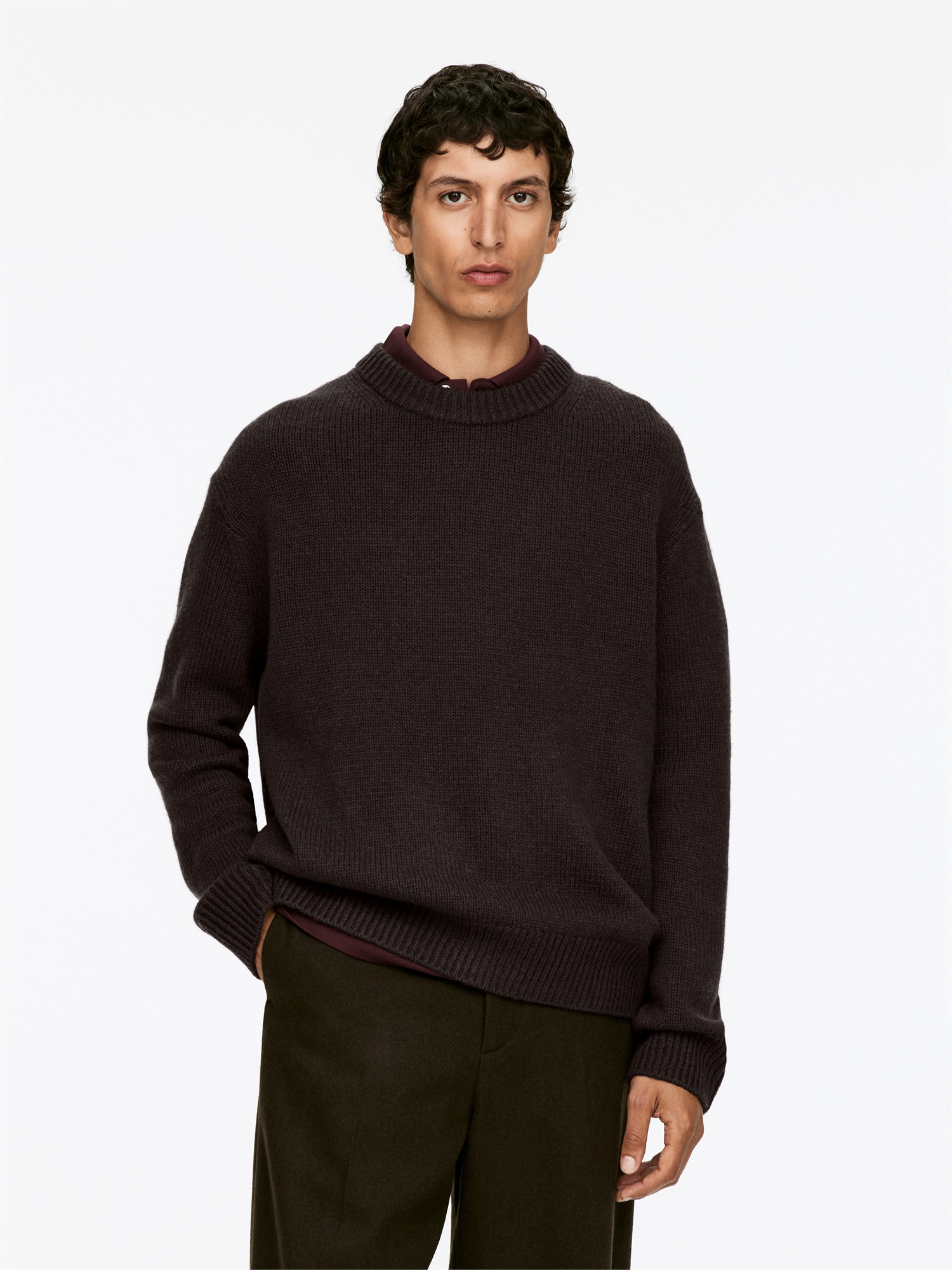 Джемпер из плотной шерсти, вязаный гладью. Свободный крой с вырезом горловины. Отделка ребристой вязкой. Изделие содержит 100% шерсти RWS (TE-00047206). Продукция, сертифицированная по стандарту ответственной шерсти (RWS), содержит шерстяное волокно с ферм, прошедших независимую сертификацию на соответствие требованиям по благополучию животных и землепользованию.
