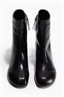Ботинки по щиколотку из ткани с покрытием, потайной застежкой на молнию с одной стороны, закругленным носком и закрытым каблуком. Атласные подкладка и стелька.