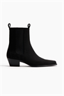 Сапоги-челси с оттопыренными носками и каблуками. Эластичные голенища по бокам и петли спереди и сзади. Атласная подкладка.