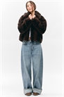 Короткая куртка из мягкого искусственного меха. Она имеет непринужденный крой, широкий воротник с вырезами, длинные рукава и двустороннюю застежку-молнию. Полностью на подкладке для комфорта и удобства ношения.
