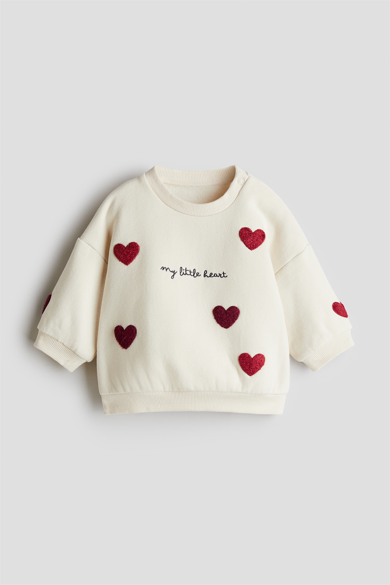 Топ из толстовочной ткани с мягкой начесом внутри и декоративными мотивами спереди. Круглый вырез в рубчик с застежками с одной стороны (кроме размеров 2-4Y), спущенные плечи, манжеты и подол в рубчик.