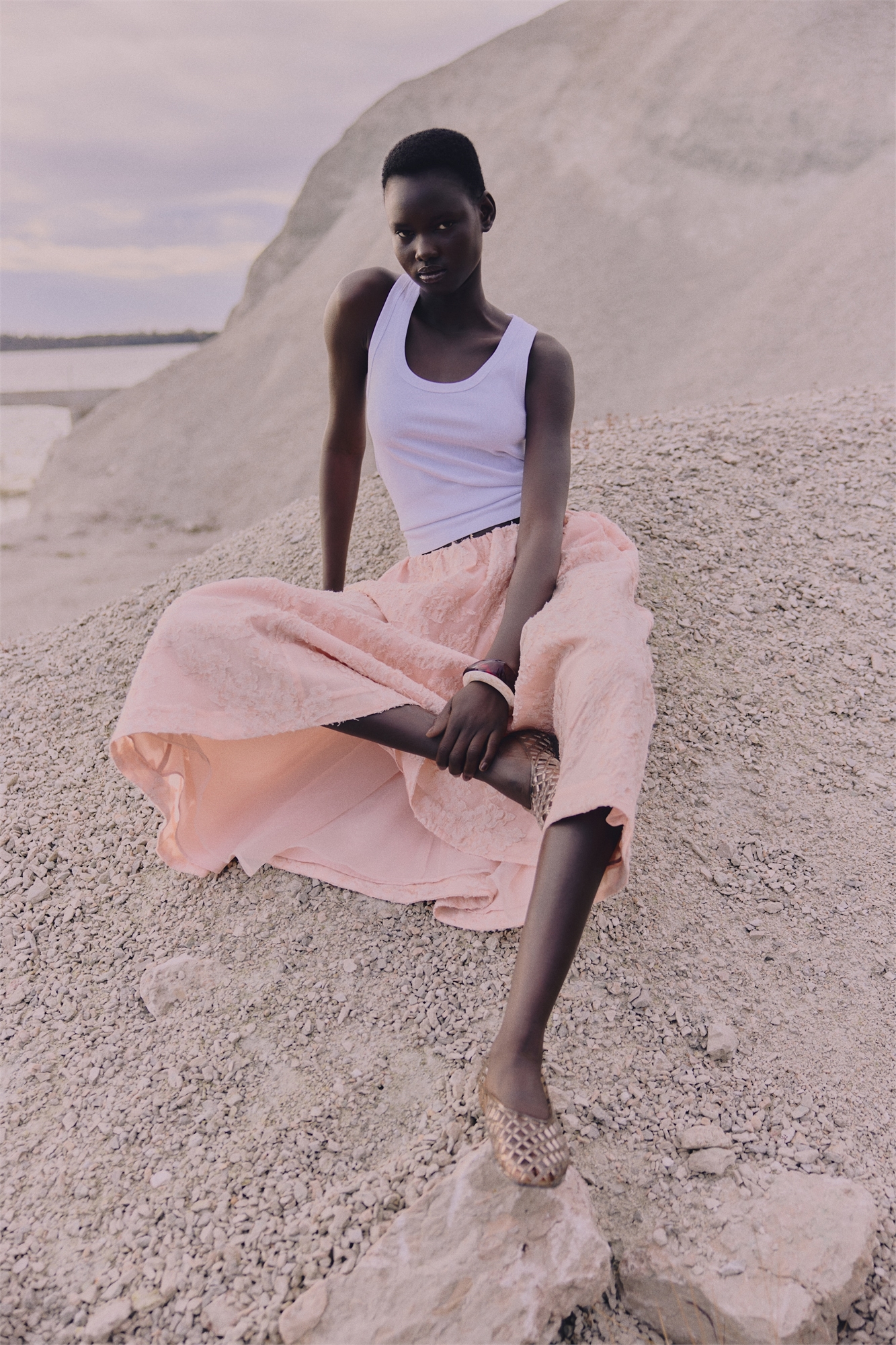 Длинная юбка из жаккардового переплетения со скрытой резинкой и сборками на талии для придания объемного силуэта. Скрытые боковые карманы и потайная застежка на молнию и крючок-глазок сзади. На подкладке.