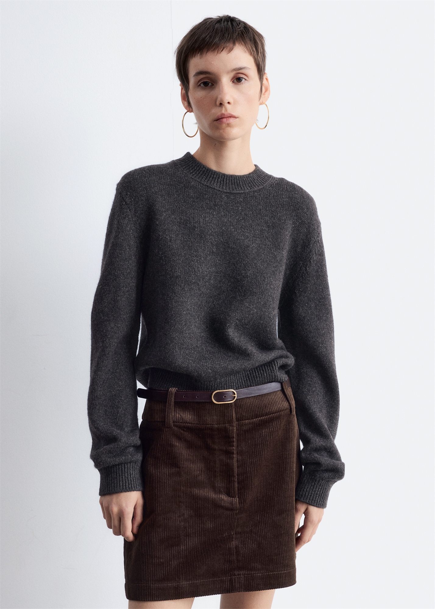 Короткий джемпер из смеси мериносовой шерсти и кашемира с ребристой отделкой и слегка спущенными плечами. Зауженный крой 70% шерсть RWS TE-00047206 30% кашемир, проверенный по стандарту The Good Cashmere Standard® от AbTF Длина джемпера: 53,5 см / 21” (размер S)