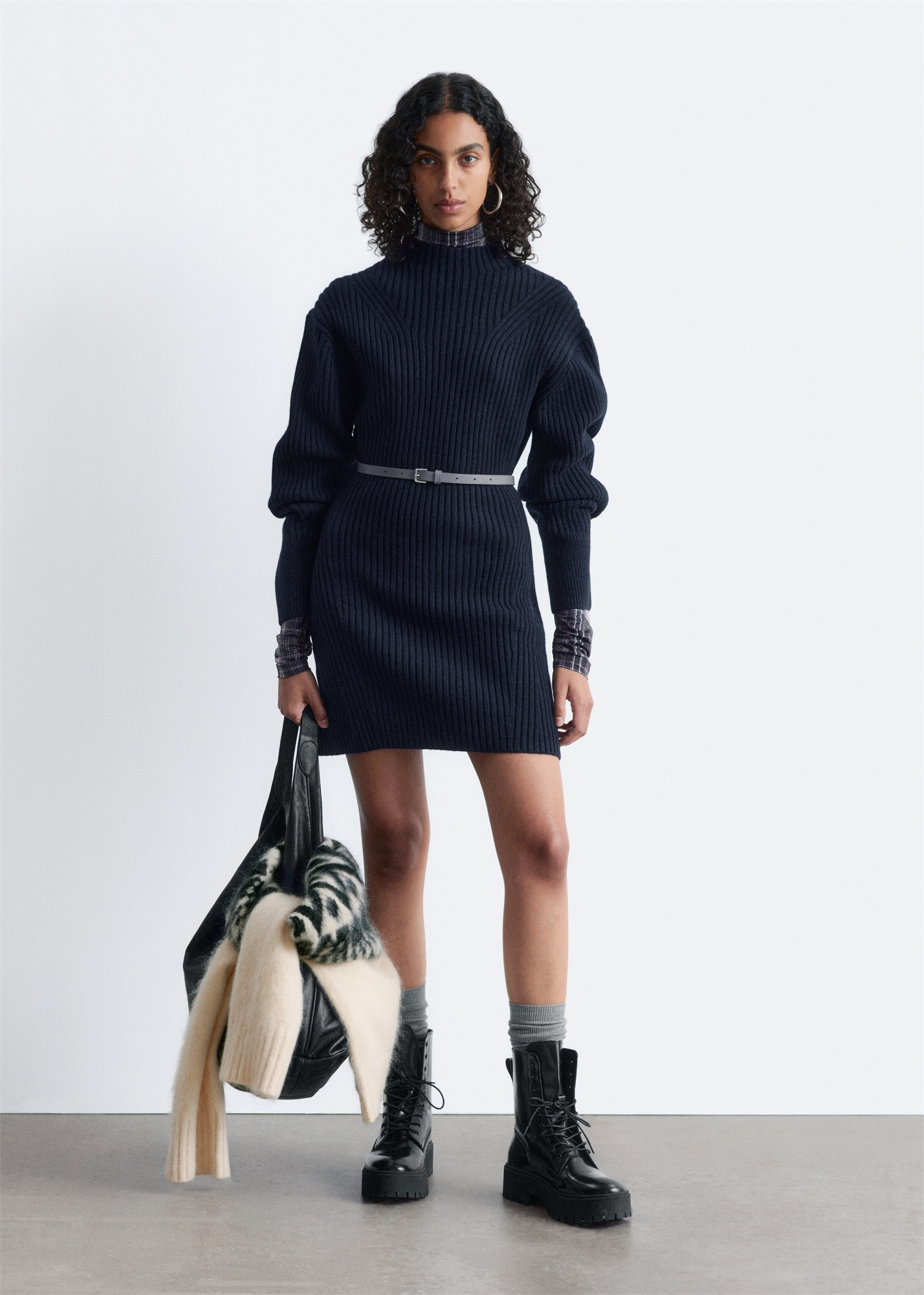 Это мини-платье связано из смеси мериносовой шерсти и хлопка с ребристой фактурой. Созданное в силуэте песочных часов с приталенной талией, оно имеет длинные свободные рукава и вырез с имитацией горловины. 55% шерсть RWS TE-00047206 Длина платья: 83 см / 32,7" (размер S)