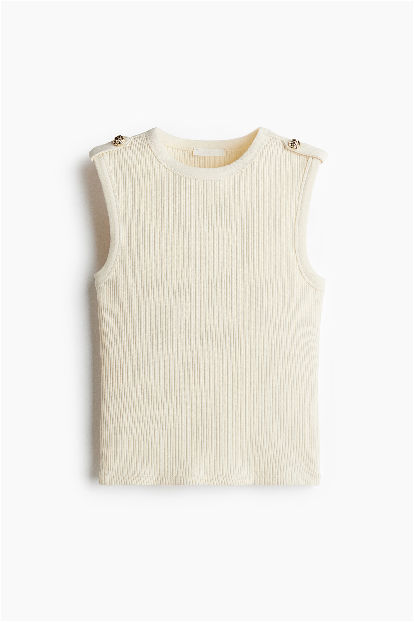 Облегающая майка из ребристого хлопкового джерси с круглым вырезом и погонами с декоративной металлической пуговицей в виде узла.