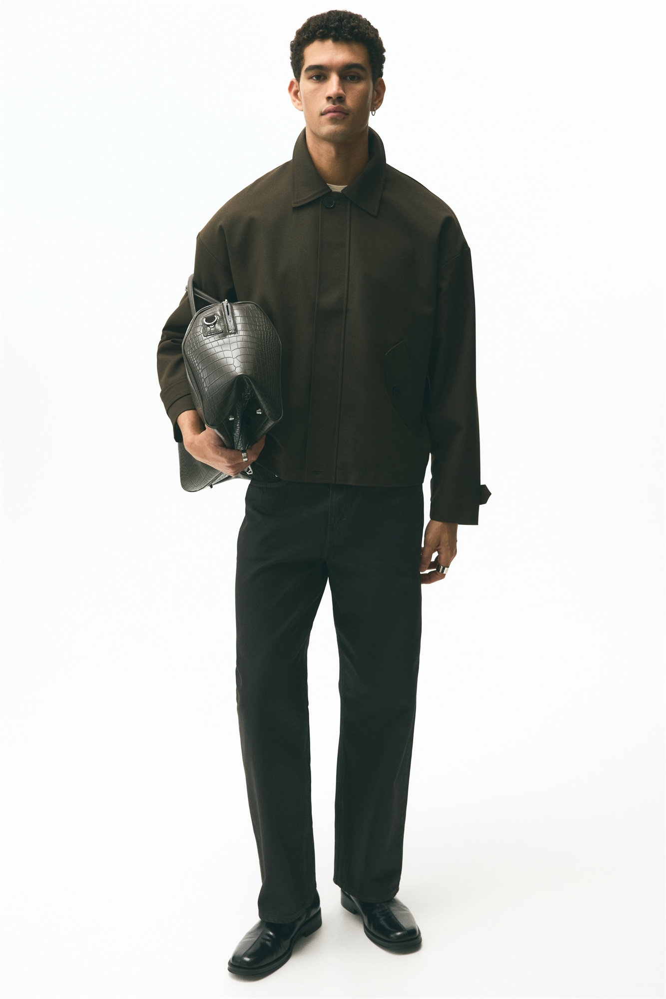 Куртка из прочной саржи с воротником, застежкой-молнией и ветрозащитной планкой, спущенными плечами, регулируемыми манжетами, накладными боковыми карманами на кнопке и внутренним карманом. Сзади подол отделан эластичным материалом. Свободный крой для пышного, но не слишком большого силуэта. На подкладке.