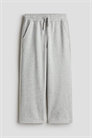 Джоггеры из легкой толстовочной ткани с мягкой ворсистой внутренней стороной. Эластичный пояс с завязками, фальшивая ширинка, диагональные боковые карманы и накладной задний карман. Широкие ноги.