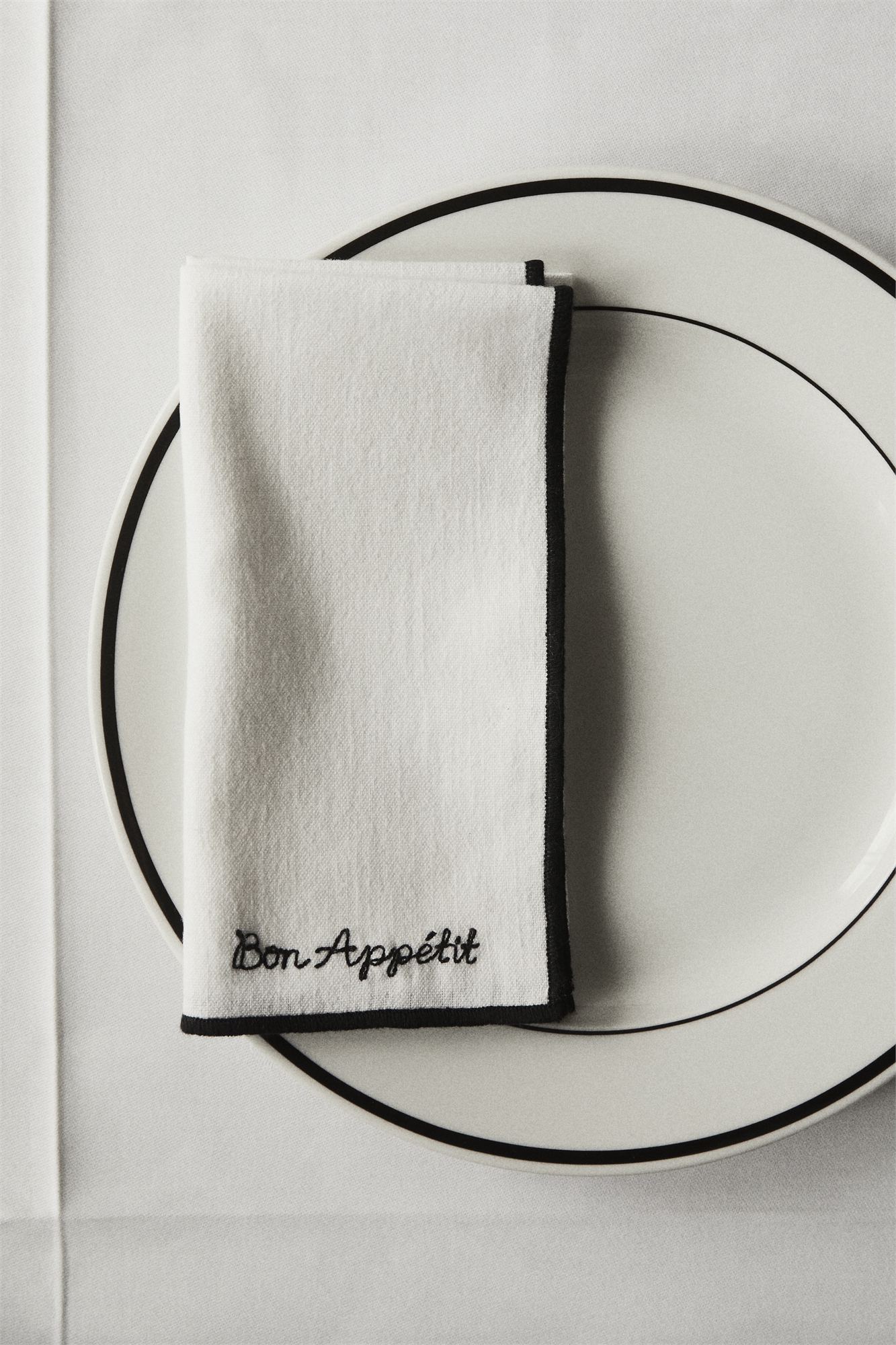 Две обеденные тарелки из фарфора с классическим расписным ободком, вдохновленные уютными бистро на улицах Франции.