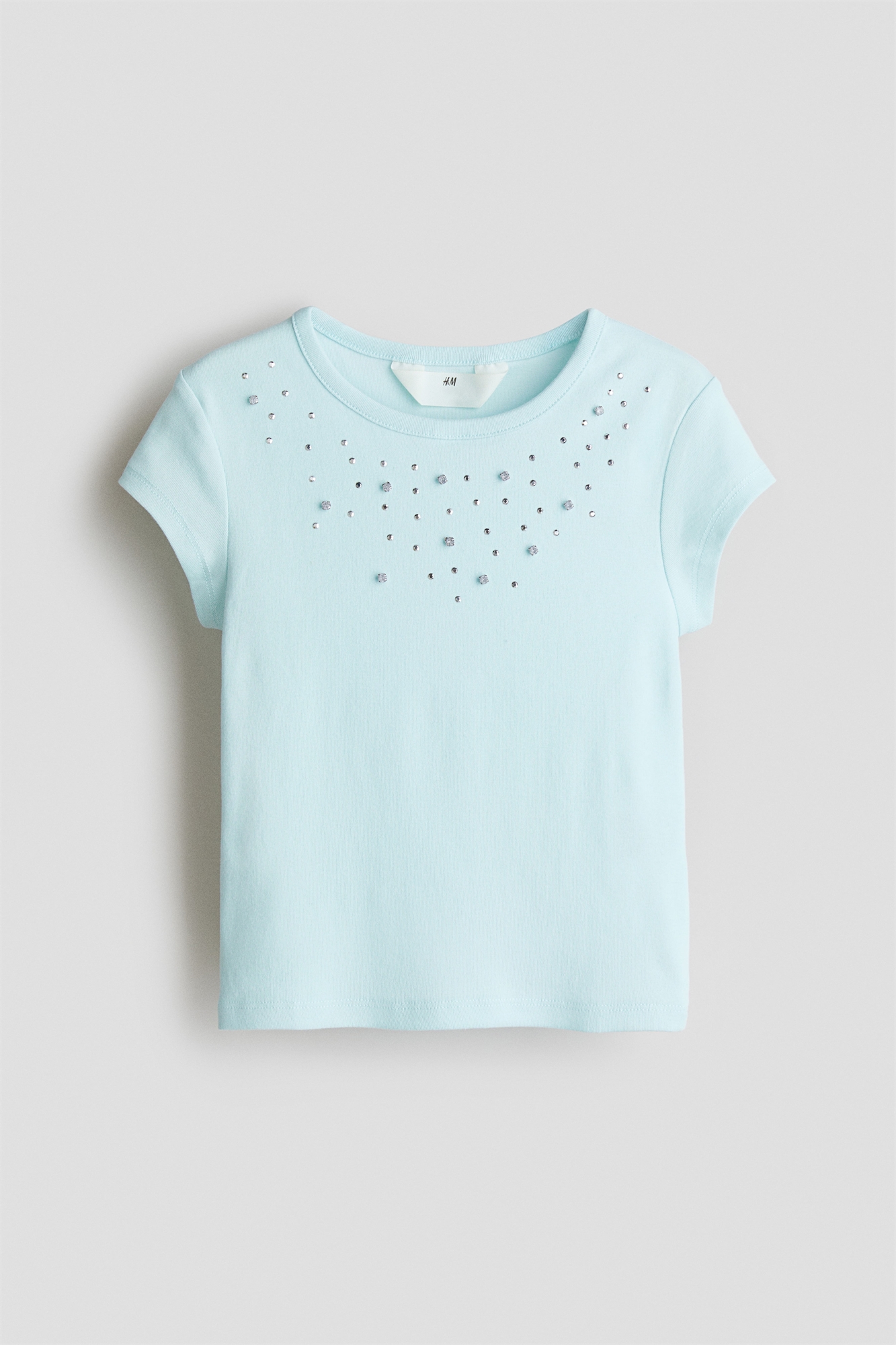 Топ из мягкого хлопкового джерси с мерцающими украшениями. Круглый вырез и рукава-капельки.