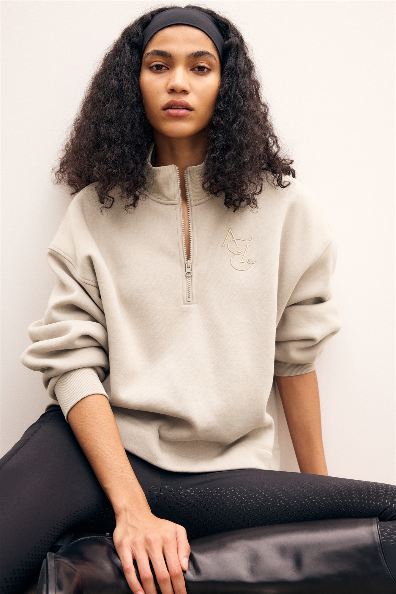 Спортивный топ с длинными рукавами, ребристым воротником-стойкой и застежкой-молнией в верхней части. Спущенные плечи и ребристые манжеты.