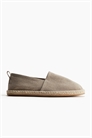 Эспадрильи из холста с плетеной джутовой отделкой вокруг подошвы и петлей сзади. Холщовые подкладка и стелька, подошва с узором.