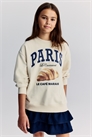 Свободный топ из легкой толстовки с принтом, круглым вырезом с ребристой отделкой, спущенными плечами и длинными рукавами. Манжеты и подол отделаны ребрами жесткости.