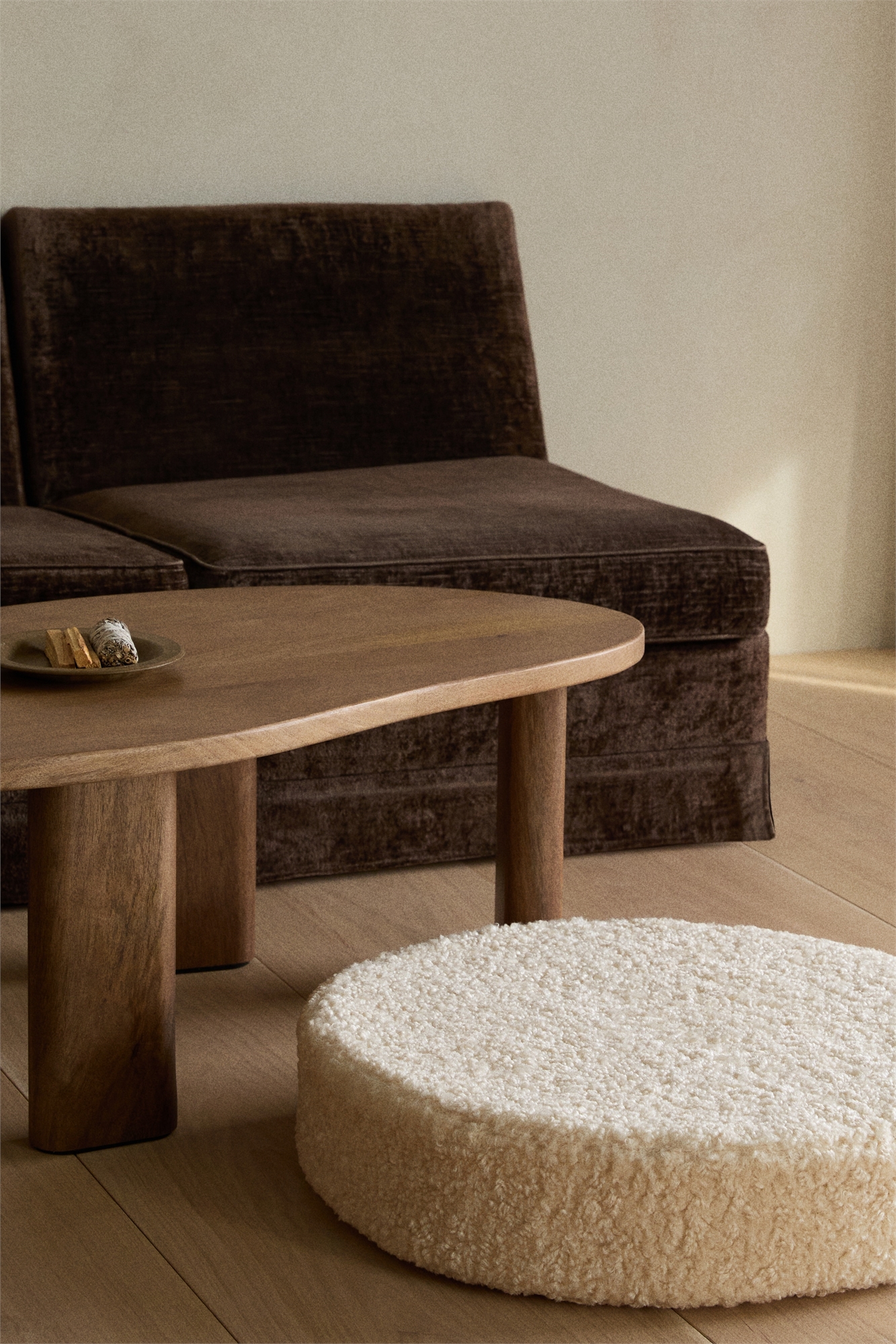 Большая подушка из мягкой и пушистой плюшевой ткани. Уютное дополнение к вашей зоне отдыха и стильный способ придать текстуру вашему дивану.