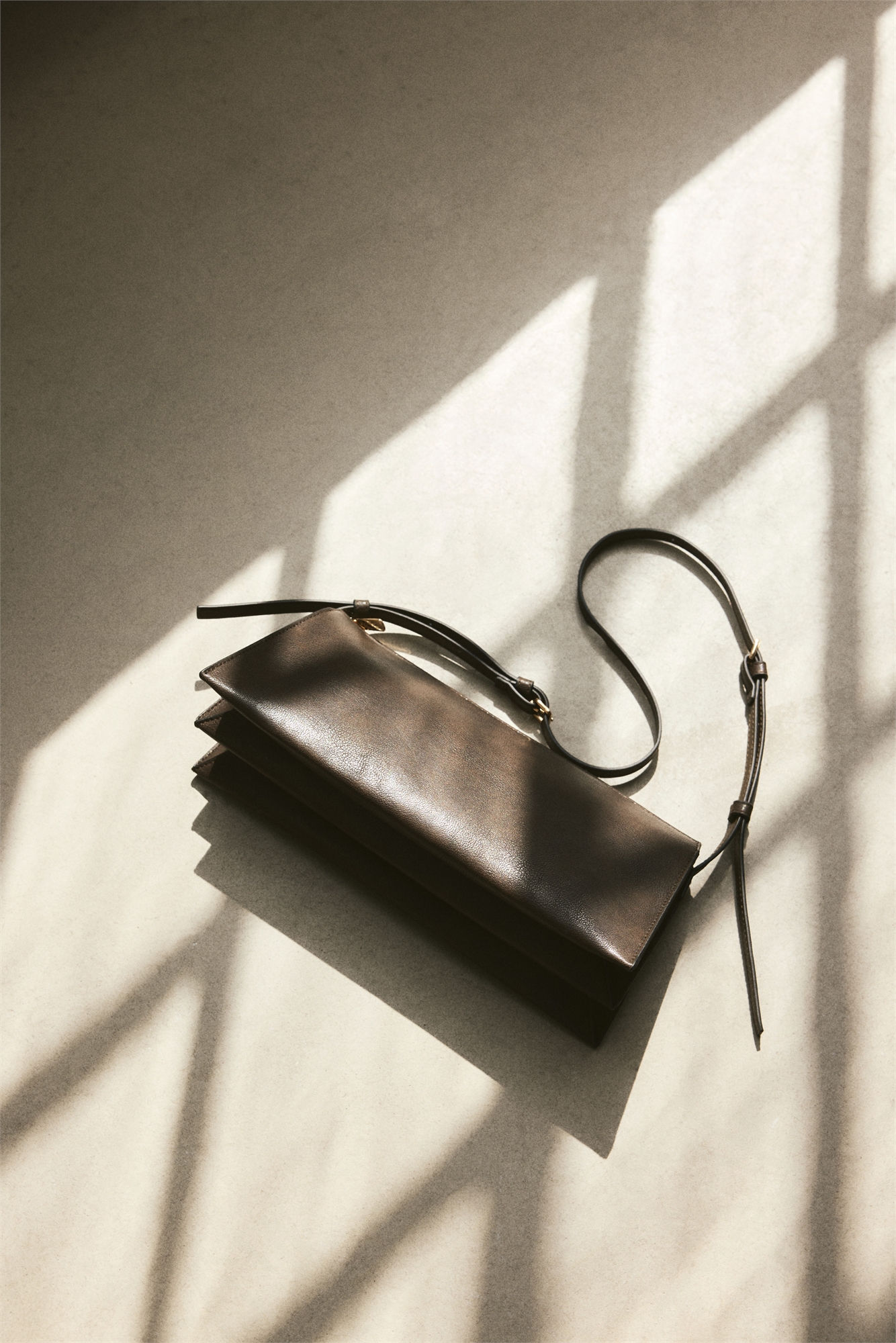 Небольшая сумка через плечо из ткани с покрытием, застежка-молния сверху и регулируемый плечевой ремень с металлической пряжкой с каждой стороны. На подкладке.