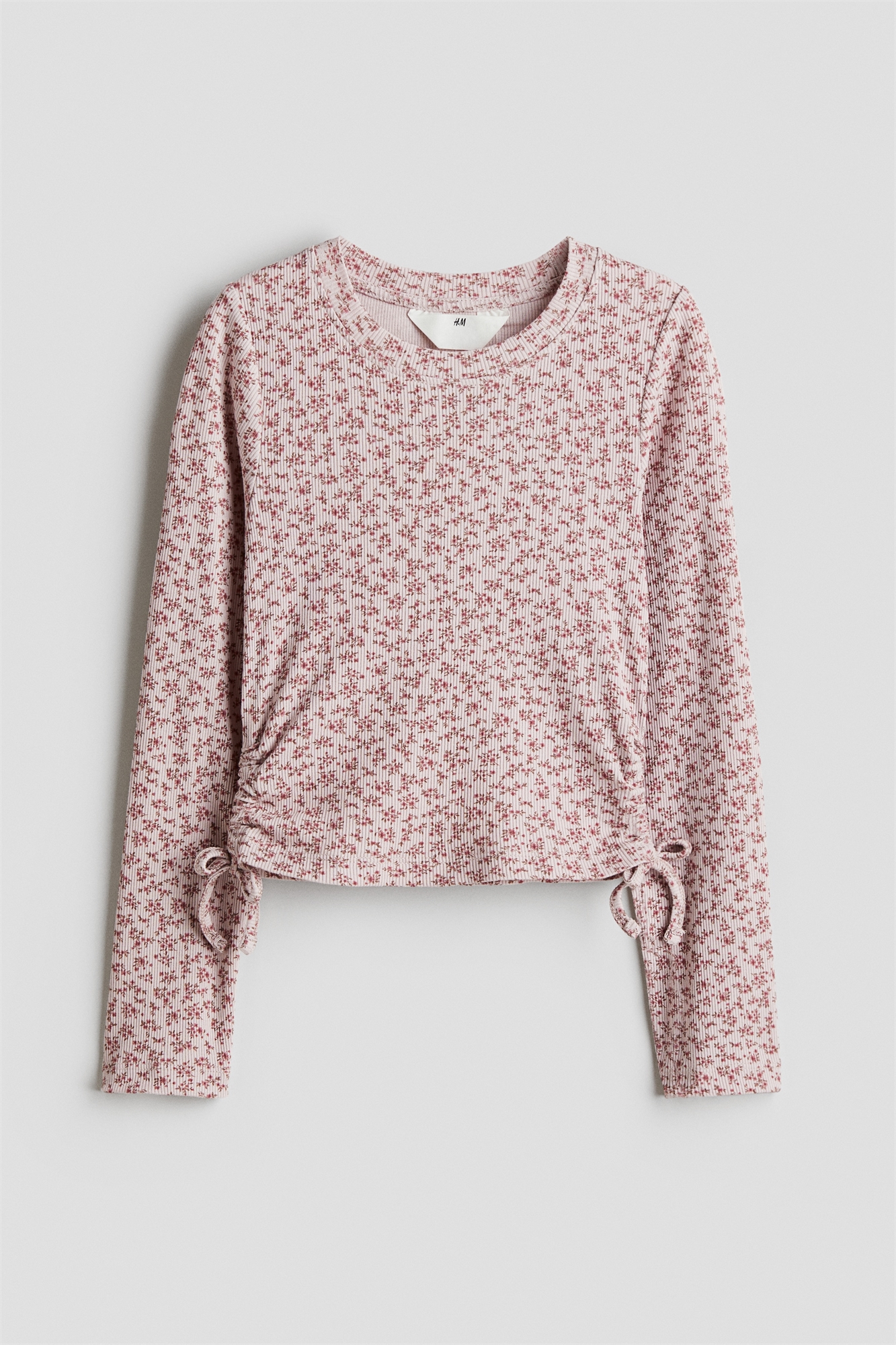 Топ из мягкого хлопкового джерси с завязками по бокам для создания эффекта драпировки. Круглый вырез с ребристой отделкой и длинные рукава.