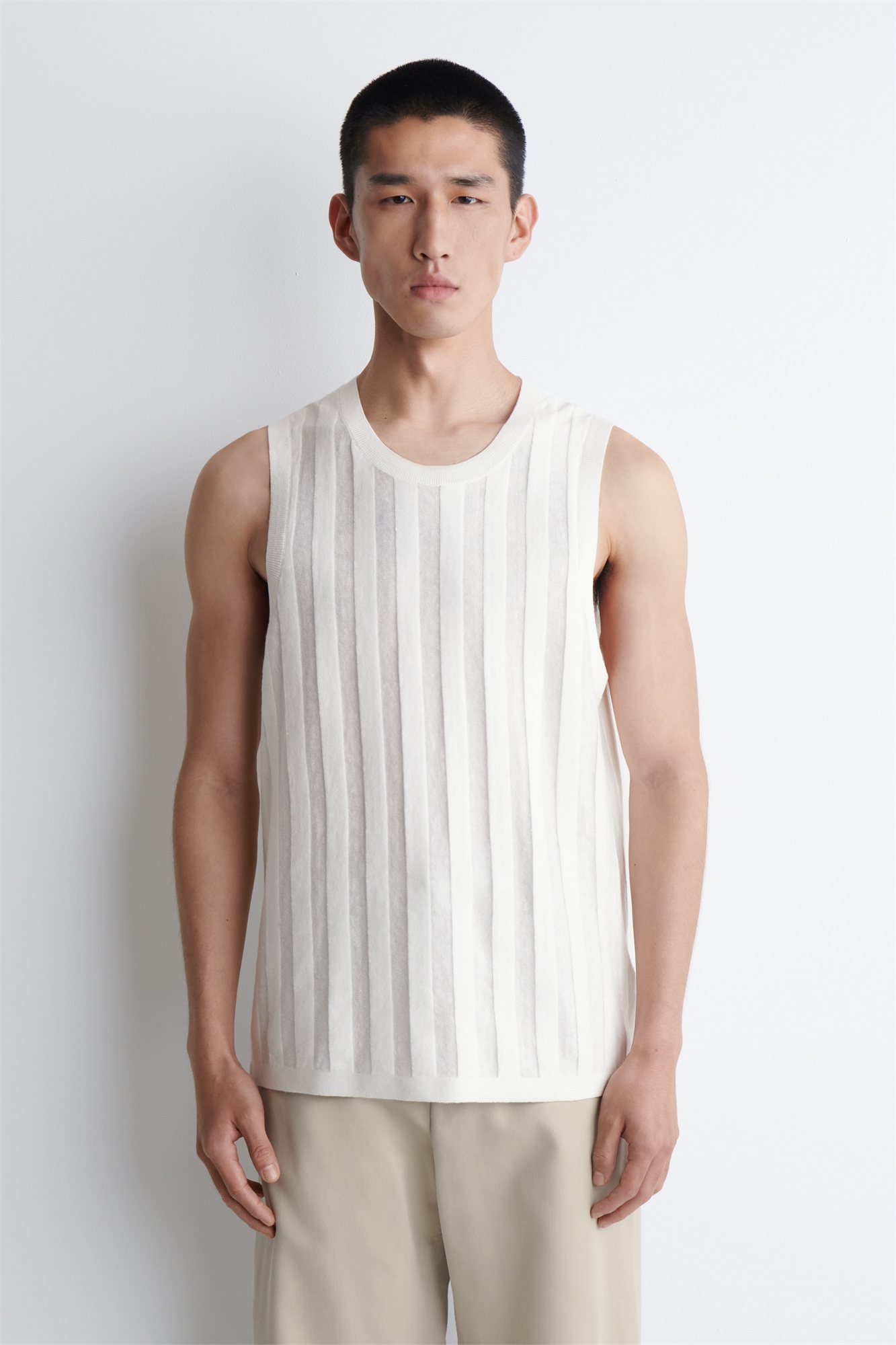 Переосмысленные символы гардероба украшают мужскую коллекцию COS. Эта современная майка в тонкую полоску сшита из легкой смеси льна и хлопка, обеспечивающей воздухопроницаемость в самые длинные дни года. Он отделан тонкой ребристой отделкой. Свободный крой Шел: 72% льна, 28% хлопка. Без учета отделки / Машинная стирка Длина по спинке для размера M составляет 65 см / Модель носит размер M